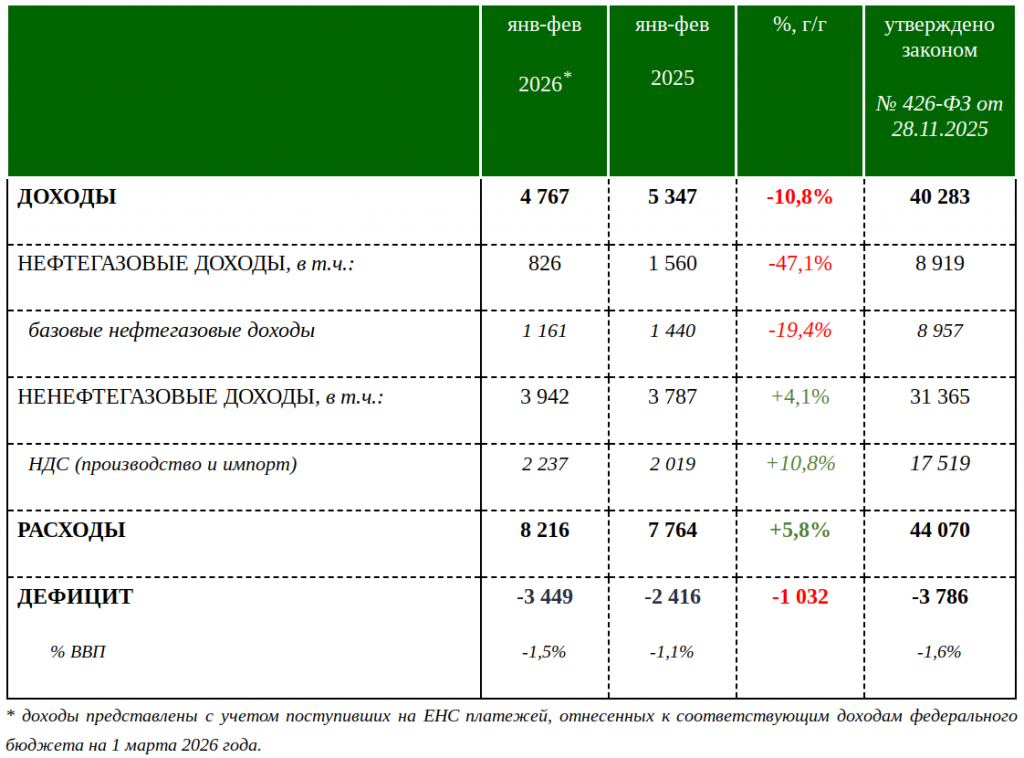 - Ненефтегазовые доходы: +4,1% (ниже инфляции)