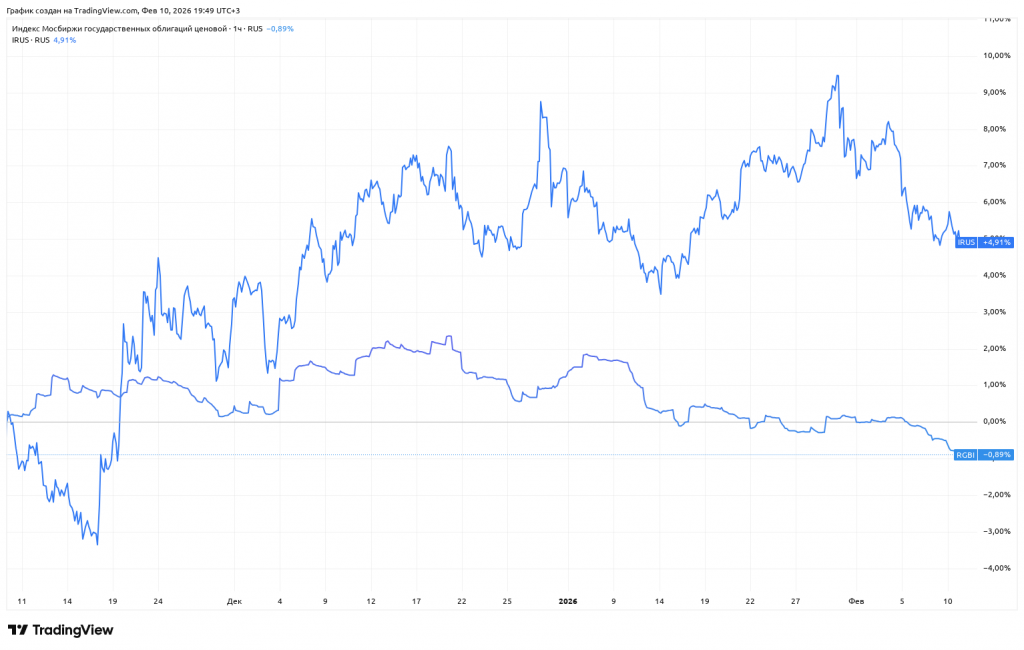 За 5 лет индекс акций и индекс гособлигаций показали примерно одинаковый результат: −20%.