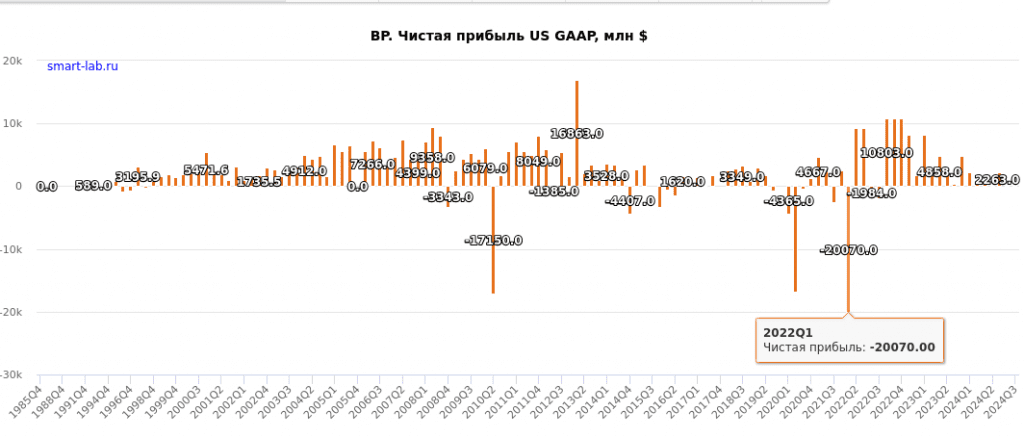 Британская нефтегазовая компания BP по итогам первого квартала 2022 года получила $20 млрд чистого убытка. Убыток компании в результате списания активов из-за выхода из «Роснефти» и рыночного влияния на российские активы после начала специальной военной операции на Украине составляет $24,033 млрд