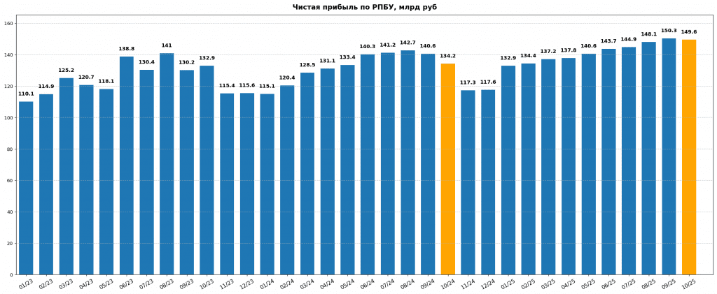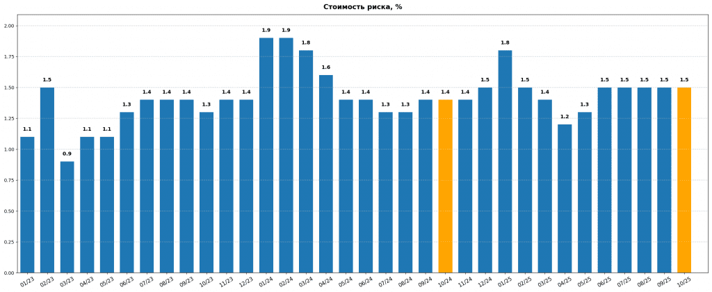 Объем кредитования составил 1 061,8 млрд рублей что на 21,5% выше, чем в октябре 2024 года