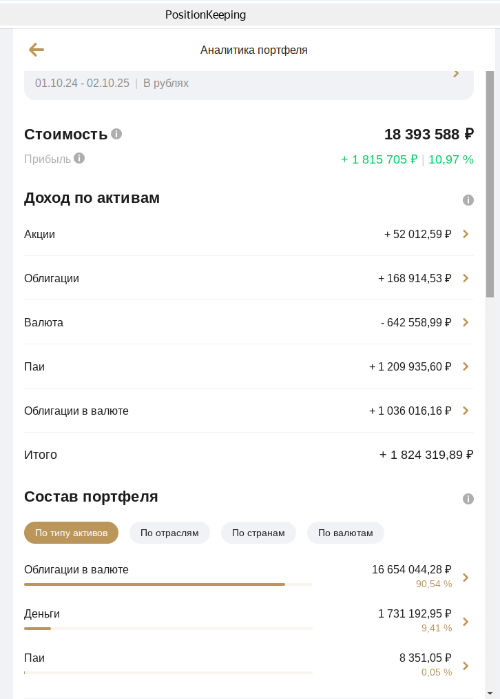 Тут валютные облигации и немного валюты (надо что-нибудь прикупить на днях).