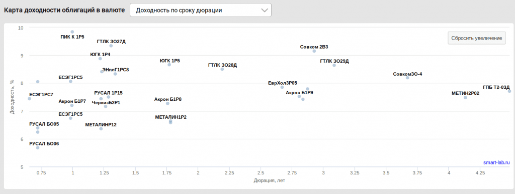 Если не брать экзотику типа Сегежи (15,5% купон в юанях), Уралстали (очень тяжело им сегодня) и прочих, доходность на вторичке такая: