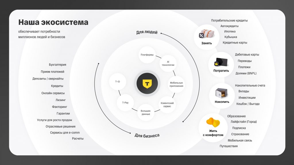 Пока Т-Технологии — бигтех лишь авансом. Да, их стратегия и долгосрочные цели четко сформулированы, а банк — отличный инструмент для построения широкой экосистемы. В будущем этот потенциал может быть реализован. Сначала доживём до этих светлых, а потом и будем на бизнес смотреть не только как на банк.