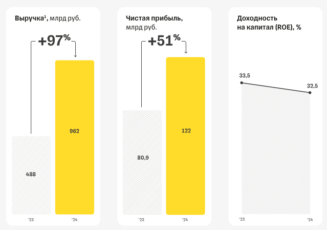 Тем не менее сам по себе Т-Банк — отличный актив. Растёт быстро, зарабатывает много. Впечатляющие темпы роста, высокая маржинальность.