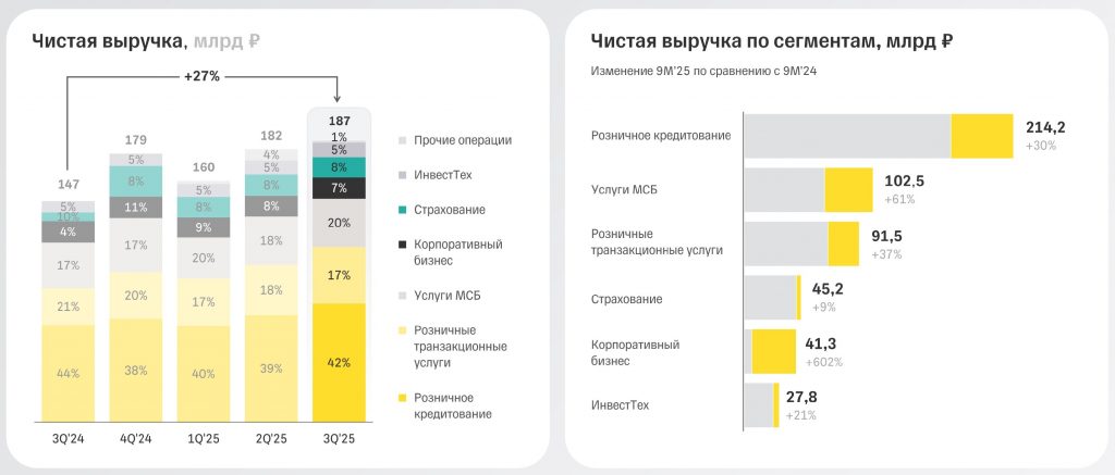 Несмотря на заявления о технологичности, большая часть выручки и прибыли Т-Технологий по-прежнему генерируется классическими банковскими операциями, в которых доминирует розничное кредитование.